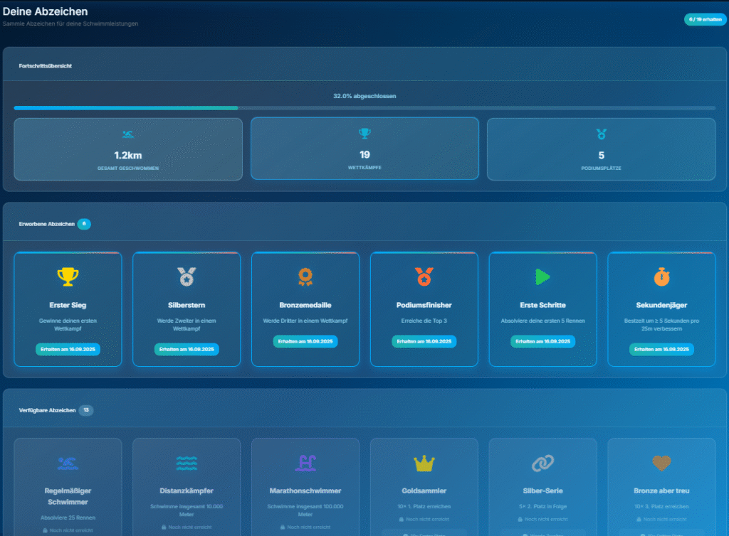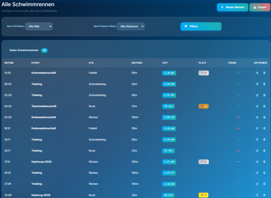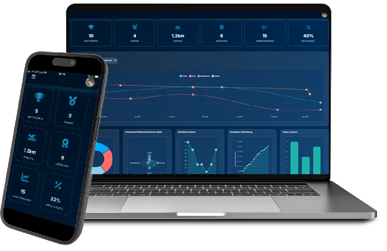 Alle Trainings, Wettkämpfe und Fortschritte auf einen Blick.