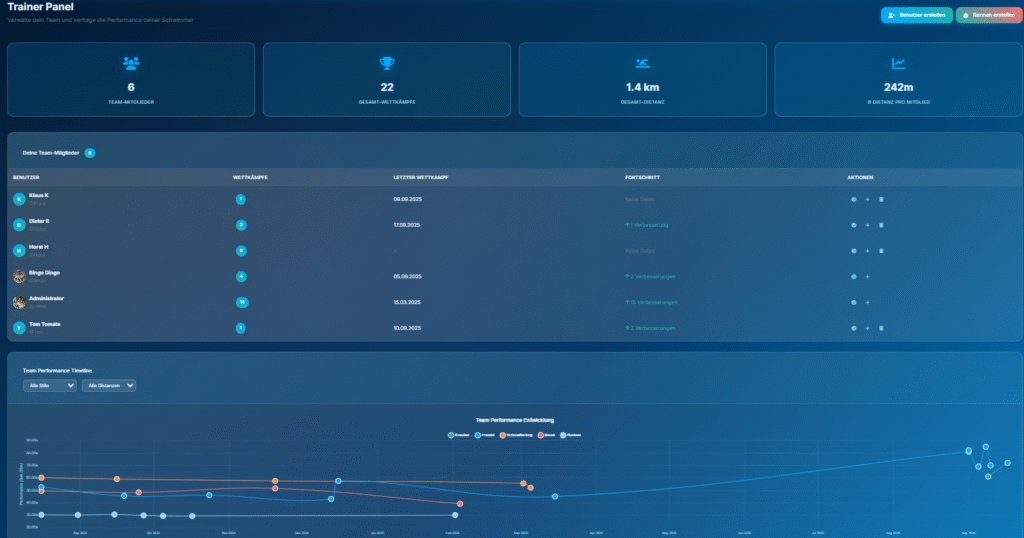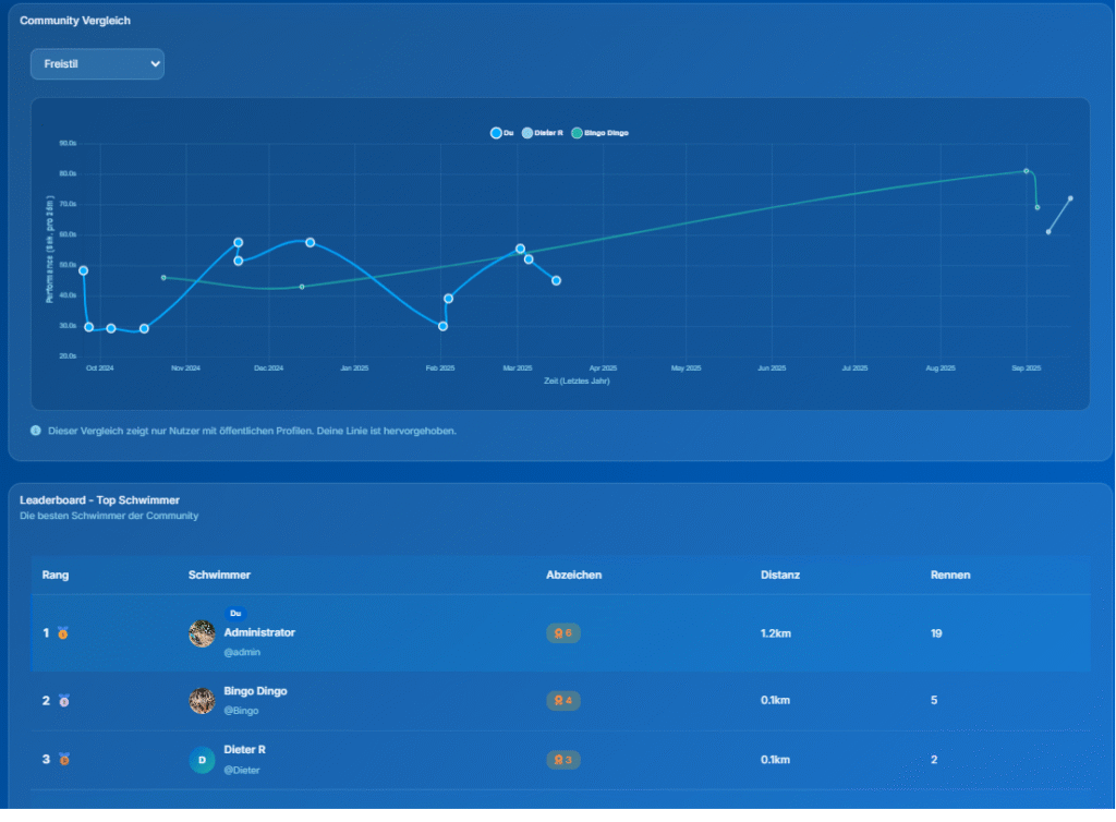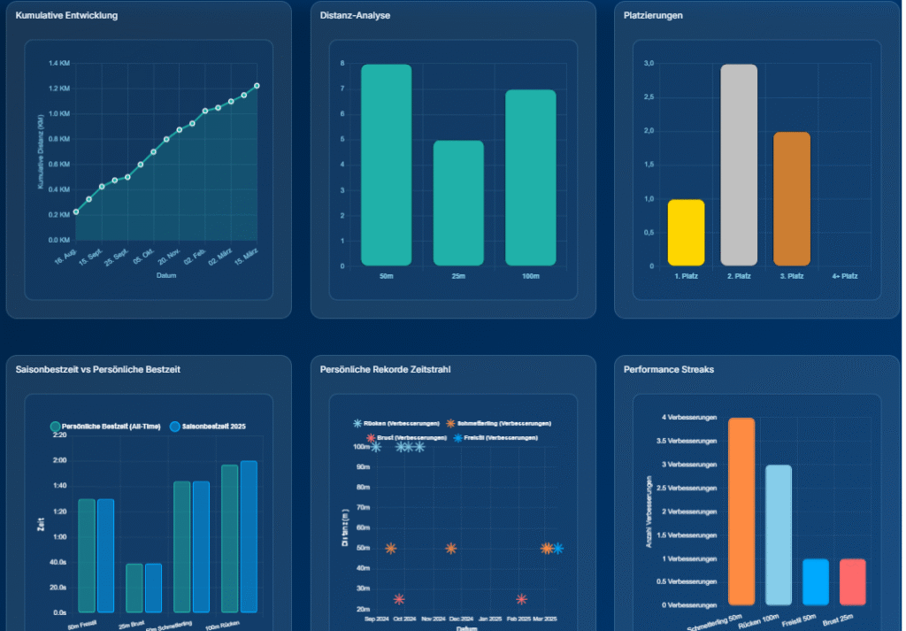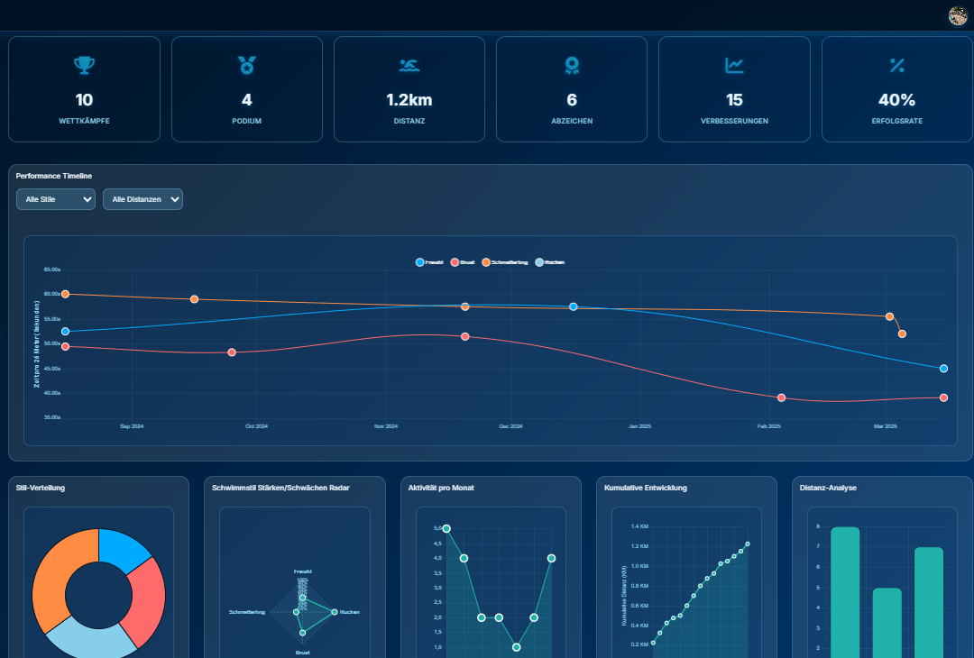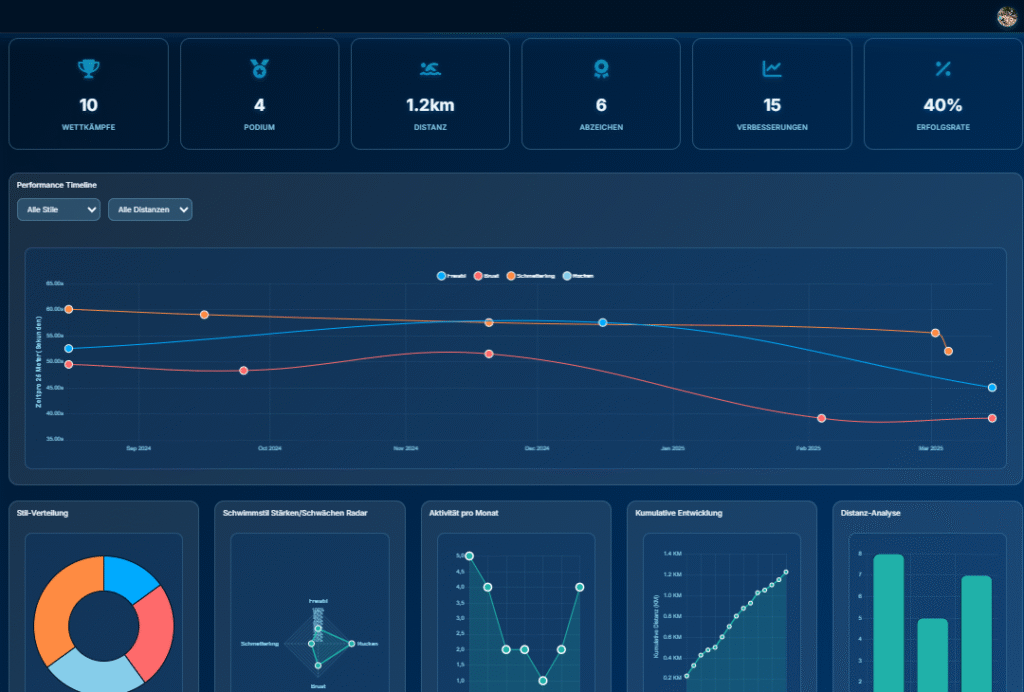 Distanz, Geschwindigkeit, Lieblingsstil, Verbesserungen im Zeitverlauf.